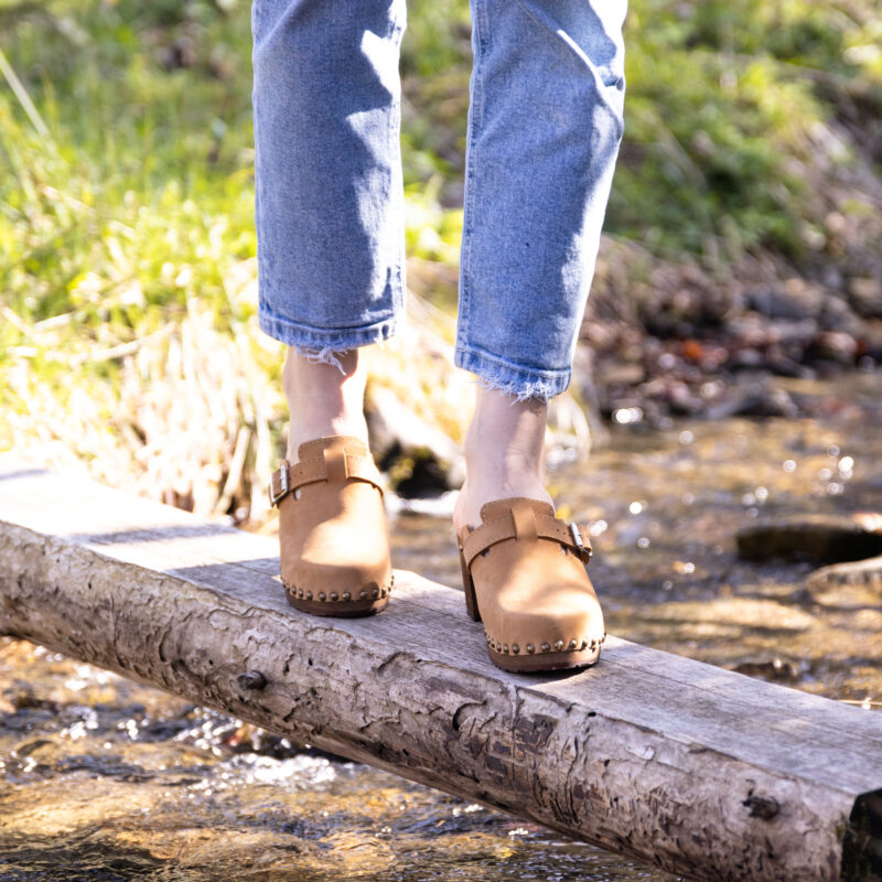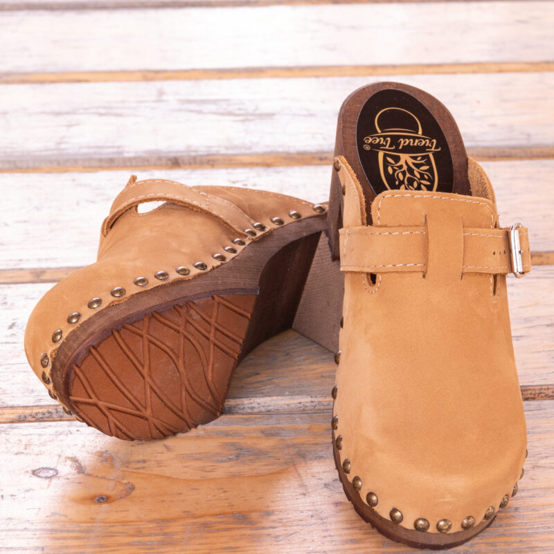 Experience elegance and comfort with our Honey Nubuck High-Heeled Wooden Clogs. Meticulously crafted from soft, natural leather and lightweight lime wood, these stylish heeled sandals are not only chic but also focus on providing unparalleled comfort and support for your feet.