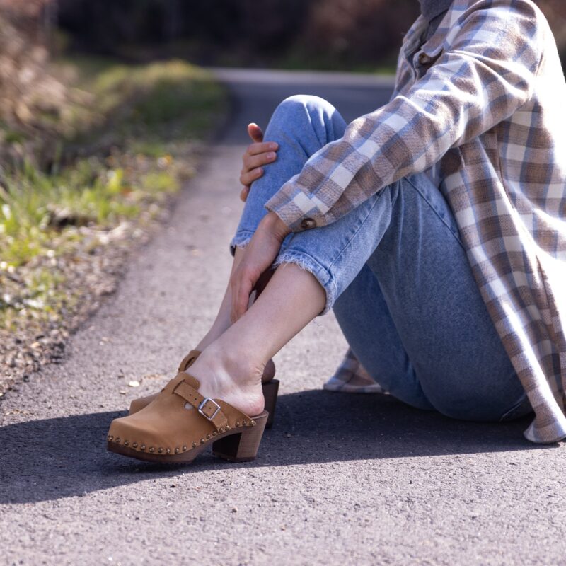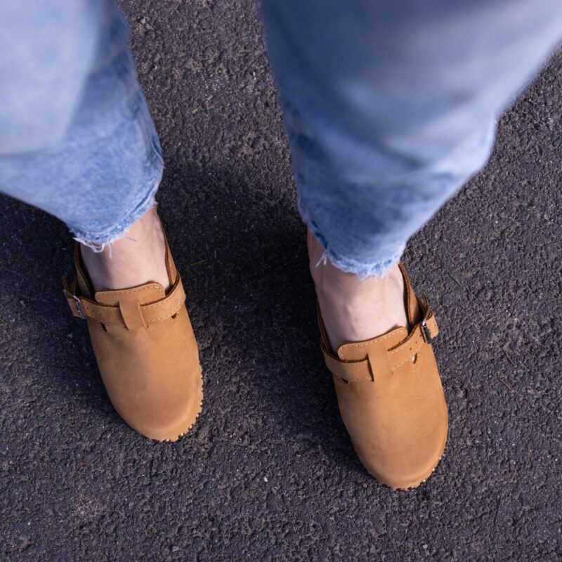 Add a touch of elegance to your everyday outfits with our Honey Nubuck High-Heeled Wooden Clogs. These clogs are not just footwear; they are a testament to style, comfort, and craftsmanship. Order yours today!